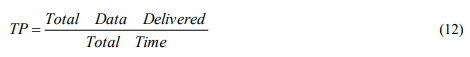 Throughput (TP) measures the amount of data successfully transmitted over the network within a given time frame. Throughput is calculated by the following Eqn. (12).