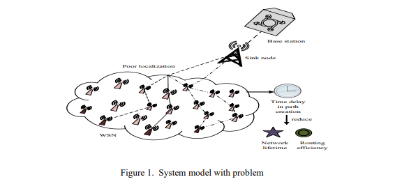 The main cause of overtime in the WSN architecture is due to the poor localization procedure. In the WSN framework, the path creation time requirement is very high if the localization is not appropriate. Hence, the high path creation time might reduce the network lifetime and routing efficiency. Taking these concerns into account, the current work attempts to apply a novel technique appropriate for effective routing and localization. The WSN framework with poor localization is described in Figure 1.