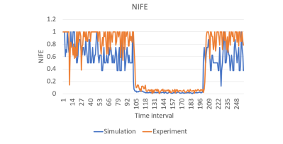 Figure 10 illustrates the NIFE value, which measures the interaction between streams. Under normal conditions, the average NIFE value is approximately 0.9 in simulations and 0.7 in experiments. However, during an attack, the NIFE value drops sharply to nearly 0 in both simulation and experimental settings. This drastic decrease indicates a significant reduction in two-way interaction between the hosts, reflecting the victim’s inability to respond promptly due to the ongoing attack