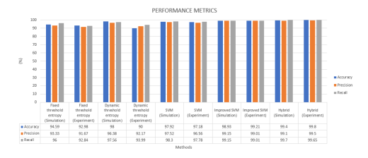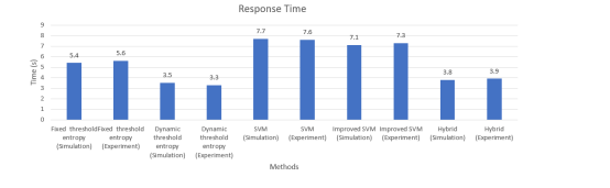 The hybrid model outperformed all other methods, achieving up to 4% higher accuracy than the static threshold entropy method and a faster response time of around 3 seconds. The integration of entropy with SVM in the hybrid model combines the strengths of both methods, resulting in exceptional performance and outstanding results.