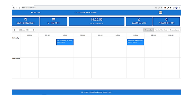 The interface for doctors offers intuitive double-click interactions and a personalized dashboard for efficient appointment management (see Figures 8.a and 8.b). Key features include: