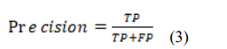 Precision is calculated by dividing the number of accurate positive predictions by the total number of accurate positive class values predicted. It functions as an indicator of the classifier’s exactness. When the value is low, it indicates a significant quantity of FP.