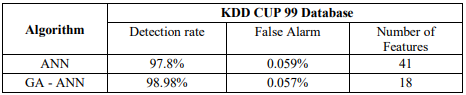 The GA-ANN algorithm introduced in this thesis has been able to achieve the research goal with the highest accuracy (98.98%) and the lowest false detection rate (0.057%) in the KDD database. This algorithm has significantly improved compared to other machine learning algorithms and also provides the highest recognition rate using only 18 features .