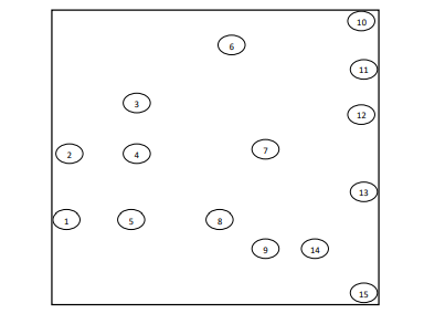 In Figure 1, a specific instance of a wireless sensor network comprising 15 nodes is depicted. The