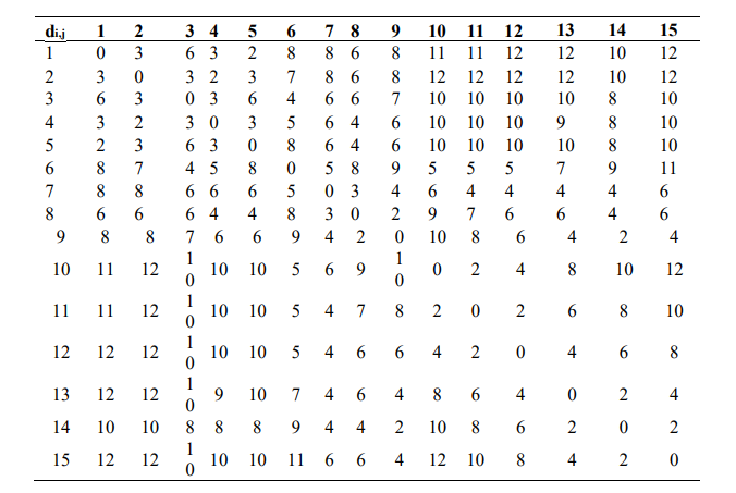 2. D = {dij, where, i∈ 1 to n; j ∈1 to n; i ≠ j} – Given by Table 2: Spatial distance of each