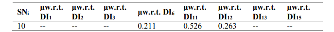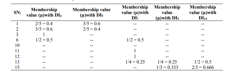 Table 9: Membership values (µ) of the set NDA for the new set DI