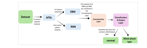 • Recurrent Neural Network (RNN): RNNs are employed for analyzing sequential traffic data, capturing temporal dependencies that characterize DDoS attack behaviours.