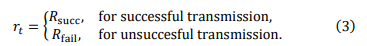 with the initial condition π1 = 1.0, where π½ is the learning rate for transmission probability; 0 β€ π½ β€ 1, and ππ‘ is the reward at Frame π‘, which is defined as
