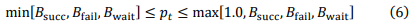 In order for (4) to be a valid transmission probability, it is necessary that 0 β€ π΅succ, π΅fail, π΅wait β€1.Similarly to (2), from (4) the updated value ππ‘+1 is an internally dividing point between ππ‘ and ππ‘ at ratio of π½: (1 β π½). Since π1 = 1.0 and 0 β€ π½ β€ 1, an inequality