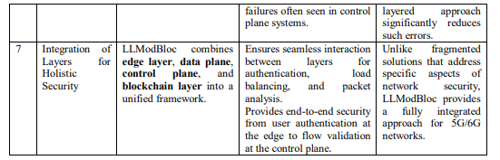 Compared to existing methods, LLModBloc achieves higher efficiency and security, making it a practical choice for real-world applications such as IoT ecosystems, industrial automation, and critical infrastructure protection. Its ability to handle massive user connections, adapt to dynamic network conditions, and ensure low-latency communication positions it as a foundational architecture for 6G and future networks.