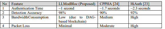 Authentication Mechanism: LLModBloc interprets HiAuth and CPPHA as substandard as it is able to combine lightweight cryptographic techniques customized integrated with physical unclonable function (PUF) and finger vein biometrics without incurring an additional computational cost.