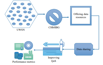 The main objective of this work is to maximize throughput and network longevity to maximize QoS. Hence, a novel Clustering hello-routing-based Honey Badger Googlenet (CHbHBG) Mechanism has been introduced. Here, offering the required data rate resources for all the UWSN nodes are considered the major process. Finally, the throughput ratio and network longevity were measured to determine the UWSN network’s efficiency. Besides, all network parameters were measured and compared with all traditional studies. Fig. 2 illustrates the steps of the proposed technique.