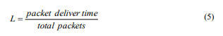 The time taken for departed packets to reach the SH is measured as latency. It is the typical delay of all information packets flowing at the target from various sources. The time efficiency of the network can be calculated by latency or delay. The latency calculation is shown in Eqn. (5).
