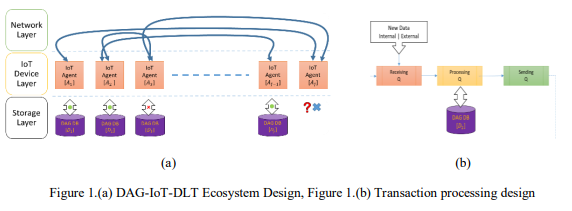 Figure 1. (a) DAG-IoT-DLT Ecosystem Design, Figure 1.(b) Transaction processing design