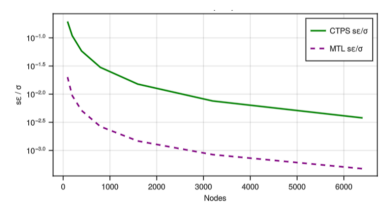 The stability of *σε/σ* across node sizes (e.g., 0.0024–0.0049 for CTPS) suggests the