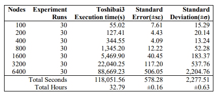Table 4. Full experiment runtimes in seconds(s) 30 runs per node count