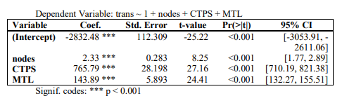 Table 7. Linear regression results predicting transaction throughput (trans) from network nodes, CTPS, and MTL