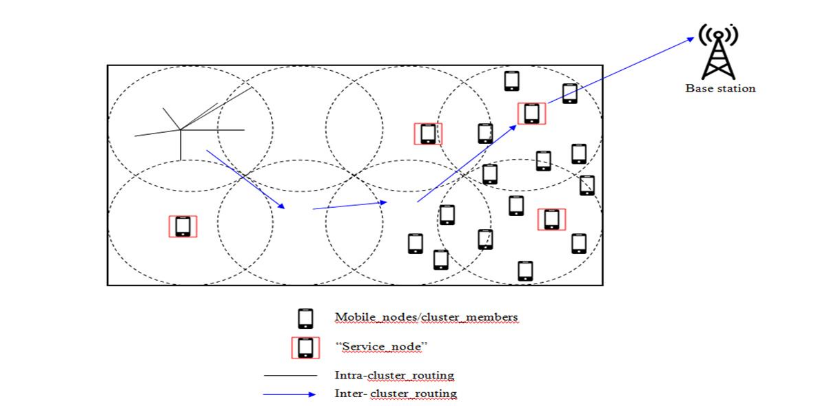Figure 1 shows the Purposed CTSMP-Routing system and its whole structure as well as the sequence of operations engaged in its operation. The proposed CTSMP routing scheme structure for a MANET is based on a clustered approach, where mobile nodes or cluster members communicate within clusters through service nodes that facilitate intra-cluster routing and intercluster routing towards the base station. Each cluster operates independently for local communication, while inter-cluster routing ensures efficient data transmission by forwarding information through selected service nodes until it reaches the base station, optimizing network performance and reducing communication overhead. The program starts with mobile nodes placed within the MANET system. The network passes through a critical phase—that of cluster development—once the nodes are in place. The modified proportional topology optimization (MPTO) technique helps this process to be eased. The MPTO method assures that the network achieves load balancing and energy economy, hence organizing the mobile nodes into clusters primarily relies on it. The approach then generates trust degrees among the cluster members after cluster evolution. It does this using an enhanced search optimization (ESSO) method. The trust degree computation determines the reliability of cluster members and influences the choosing of and service node within every cluster as well. Key participants in the routing process, service nodes are carefully chosen based on several design criteria, therefore boosting security at the first level in addition to network performance. After the service nodes are established in place, the method employs a multi-layer deep recurrent neural network (ML-DRNN) comprising an optimal route finder. This neural network helps one to identify and decide on the most appropriate path between the source and destination nodes. Apart from increasing data transfer efficiency, this decision process is supposed to provide a robust protection against any risks and security breaches.