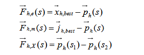 where: 1 s , 2 s ∈ {s, s − 1, s − 2}, ( )1 p s h and ( )2 p s h are the best advantages of h- h -{p (s 2), p (s 1), p (s)} h separately; h best j , is the optimal position in the region where the hth exploration factor is positioned; h best x , is the optimum neighborhood from the h-th exploration factor to the current locality; 1y and 2y are random numbers in [0,1]. ω is the weight of inertia