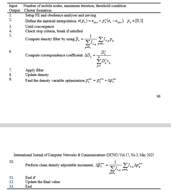 The modified proportional topology optimization (MPTO) approach yields perfect clustering. This approach is supposed to take advantage of spatial data on network nodes—that is, their locations and the distances separating them. MPTO aims to create clusters wherein the demand on each one is balanced, therefore avoiding the development of a bottleneck for network traffic from one cluster by itself. The method considers many input variables, including network characteristics, node locations, and maybe additional aspects as energy energy levels or node mobility. A well-defined cluster structure produced by the MPTO method best balances the load of the network. Every cluster comprises a group of geographically close-knit nodes, hence lowering the average communication distance inside the cluster. By increasing the general effectiveness of resource use and routing within the MANET, this company guarantees better network dependability and performance. The MPTO method aims to negotiate the ideal delivery of items satisfying the constraints and thus improve the objective meaning of the mathematical perfect. Before solving the optimization problem, the first task is to mature its mathematical model. However, if the expensive cannot precisely construct a mathematical model according to the necessities of the problem, the optimal outcomes will be greatly pretentious
