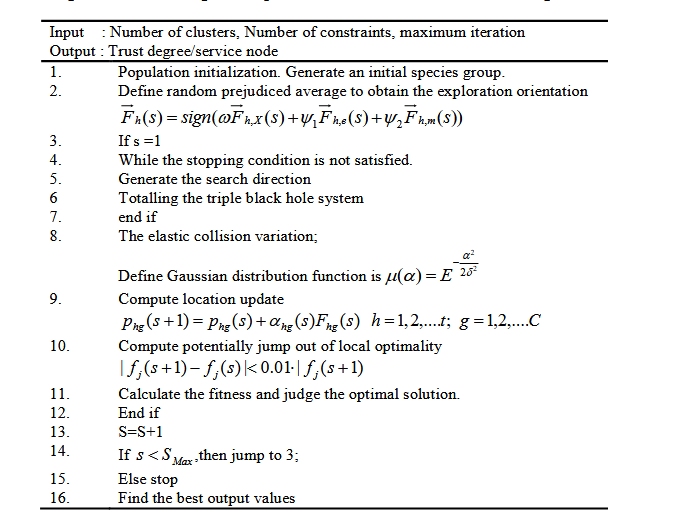 where h denotes the h-th searcher separate, g denotes the discrete dimension;)(sFhg and)(shgrespectively represents the seekers’ search track and examination step size at time s,)(sphgand)1( sphg correspondingly characterize the hunters’ site at time s and (s + 1). Thecontinuous brink x∈ [0,1] is set as the likelihood of seekerhp being seized by a triple black holesystem. For each seekerhp , a accidental number l ∈ [0,1] is produced in each restatement. If l ≤x,hp is detained by a triple black hole scheme; otherwise, it is efficient in the outdated way.