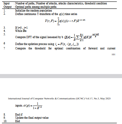 Conducted. This analysis would highlight the protocol’s resilience in realistic attack scenarios, demonstrating how MPTO (Multipath Trust Optimization) mitigates these risks and ensures secure multipath routing. MPTO enhances trust evaluation in MANETs by integrating multiple trust factors, improving security, and minimizing frequent re-clustering, unlike traditional methods like LEACH and K-Means. ESSO, a hybrid swarm intelligence approach, offers superior convergence speed, load balancing, and reduced routing overhead compared to GA and PSO. ML-DRNN is chosen for path optimization due to its ability to capture temporal dependencies and outperform models like SVM and Decision Trees in real-time route prediction under high mobility. Compared to ANN and DQN, ML-DRNN ensures adaptive decisionmaking, making it more efficient for dynamic MANET environments while balancing performance and computational efficiency.