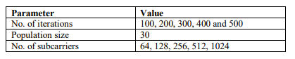 Where๐ represents the number of subcarriers and ๐๐represents ๐๐กโ complex symbol processed and sent by ๐๐กโ sub carrier. In the above eq (1), signal in time domain is generated through IFFT including ๐ modulated and orthogonal subcarriers with highest PAPR whether updating it to result of IDFT block. The mathematical formula of PAPR of OFDM signal from discrete-time is given in Eq. (2),