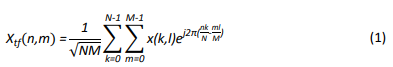 In the initial step of the OTFS transmission process, the symbols 𝑥(𝑘, 𝑙) are mapped into 𝑁𝑀 samples Xtf(n,m) on a time-frequency grid using the following ISFFT relation,