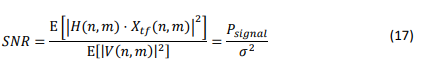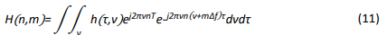 with, V(n,m) representing noise in the time-frequency domain. H(n,m) is defined as follows.