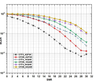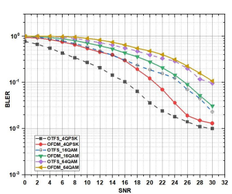 6G, DD, OTFS, OFDM, BLER, SNR.