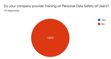 The results from the questionnaire show that many companies fail to provide training to their employees on the important issue of Personal Data Safety. This highlights a noteworthy deficiency in recognizing the importance of educating personnel on safeguarding personal data.