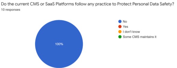 The input from industry experts indicates that Content Management Systems (such as WordPress, OpenCart, Magento, Drupal, PrestaShop, NopCommerce) lack technological features to guarantee Personal Data Safety at the system level. (Chart 8)