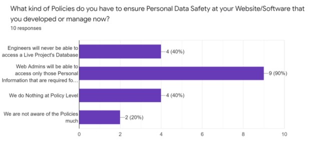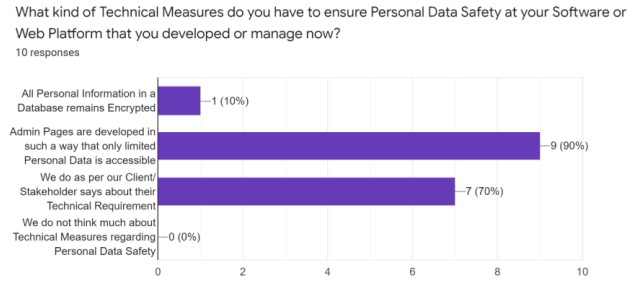 Hence, it is evident that while many companies claim to adhere to technology-level practices for ensuring Personal Data Safety, a majority of them lack awareness regarding international standard policies that could enhance the precision of implementing technological measures for Personal Data safety.