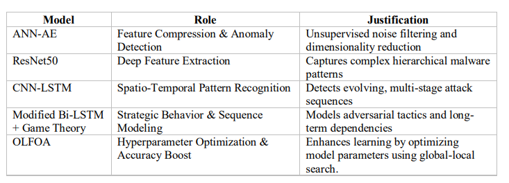 Zero-Day Attack Prediction, Hybrid Game Theory, Transfer Learning, ResNet50, ANN-AE, CNN-LSTM, Bi-LSTM, Ensemble Neural Networks, OLFOA.