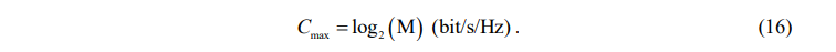 Since the design systems use M-QAM modulation schemes, which transmit log2(M) bits per symbol. The theoretical maximum capacity over noise-free scenarios can be expressed as