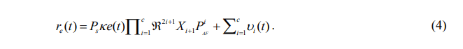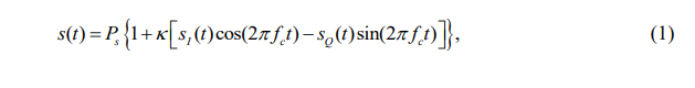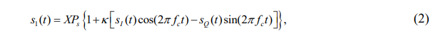where P s denotes the average optical power per symbol, k is the modulation index, and c f is the intermediate frequency. Because of atmospheric loss, atmospheric turbulence and the pointing error, the received optical intensity signal at the first relaying terminal is