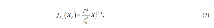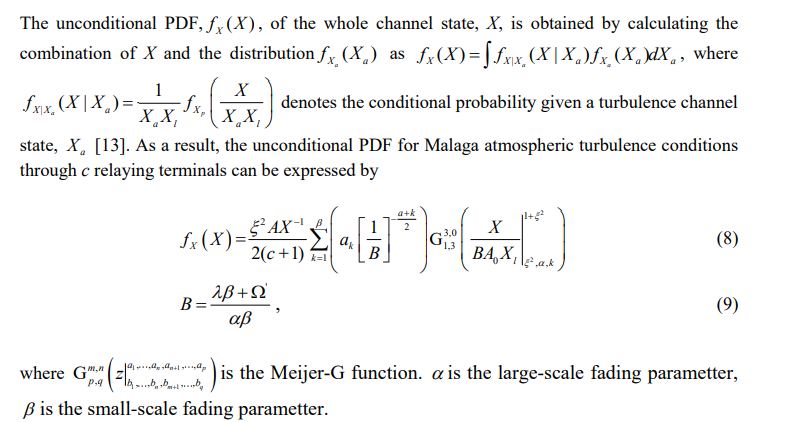 As described above, X represents the optical intensity fluctuations resulting from atmospheric loss Xl , atmospheric turbulence X a , and pointing error X p , which can be described as X X X X = l a p .