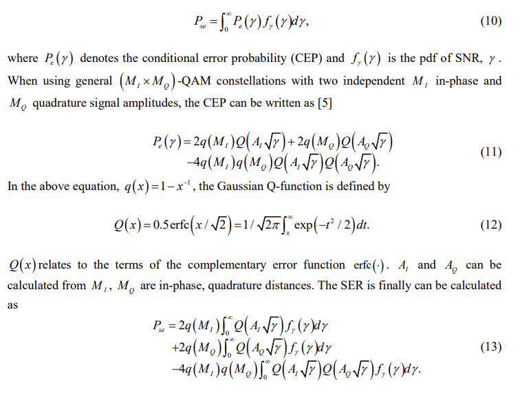 The general symbol error rate (SER) expression for evaluating the AF relaying FSO systems over the log-normal channel can be expressed by [22]
