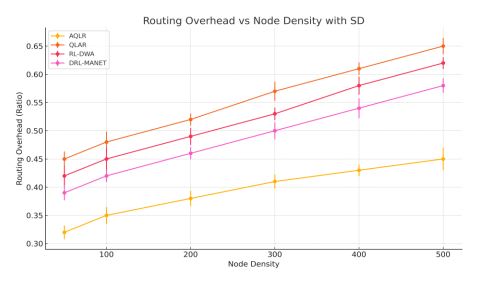 Figure 9. Routing Overhead Vs Node Density with Standard Deviation
