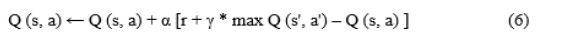 where α is the learning rate, γ is the discount factor, r is the immediate reward (e.g., successful packet forwarding or minimized delay), and s’ is the resulting state after action.