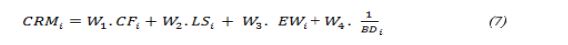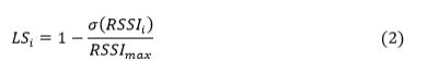 as the Standard deviation of the Received Signal Strength Indicator divided by the maximum receiving signal strength . attains a normalized value ranging from 0 to 1. Energy Weight of node (EW) normalizes the energy level of a node by dividing its current energy by the maximum initial energy represented in Eq.3