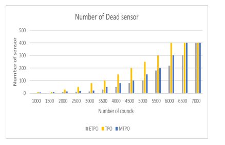 Figure 8 . A comparison of dead sensors using TPO, MTPO, and ETPO technique