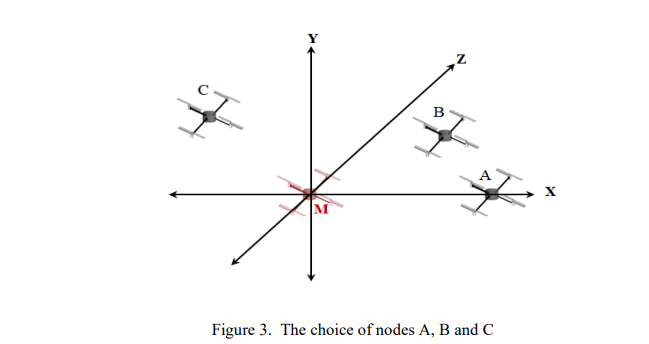 This step allows the initiator node to calculate the positions of its 1-hop neighbors. To accomplish this, the initiator node M will choose three neighbors A, B and C such that (cf. Figure 3):