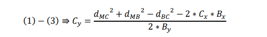 To calculate the position of node “C”, it suffices to solve the following equation system: