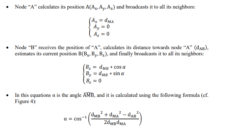 Node “M” sends a confirmation message to the A, B and C nodes to calculate their positions. Upon reception of this message, the following algorithm is executed: