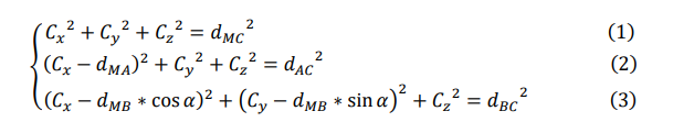 To calculate the position of node “C”, it suffices to solve the following equation system: