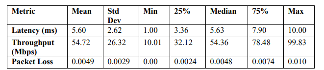 The simulations included variations in traffic patterns, device connectivity, and application requirements to test the system’s adaptability and performance under diverse conditions. For example, some scenarios simulated high-density device deployments typical of industrial IoT environments, while others focused on time-sensitive applications requiring ultra-reliable lowlatency communication. These simulations provided valuable insights into the system’s behaviour in different industrial contexts and its ability to maintain optimal performance across various application scenarios.