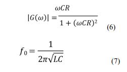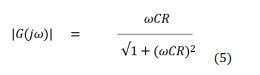 pass filter and is commonly used in devices such as digital cameras. A first-order RC low-pass filter, consisting of a resistor and a capacitor, exhibits the gain shown in Eq. (3), where 𝜔 denotes angular frequency. The cutoff frequency fc is given by Eq. (4).