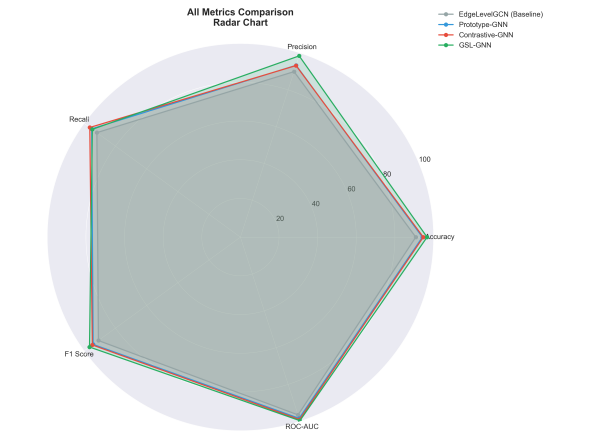 – Best balance: Contrastive-GNN (94.71%, 18 min training)