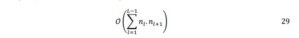 The computational complexity of the proposed ANN-Clipping approach is mainly determined by the number of neurons and matrix multiplications in the forward pass. For a network with L layers and 𝑛𝑙 neurons per layer, the total number of multiplications is on the order of: